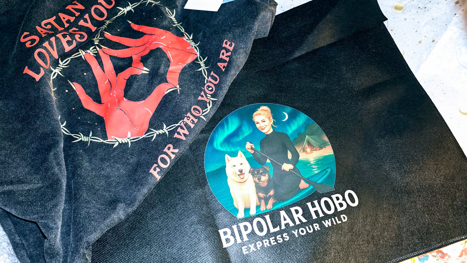 Slogan: "Satan Loves You For Who You Are" in bold red — because no one’s perfect, but we’re all loved
